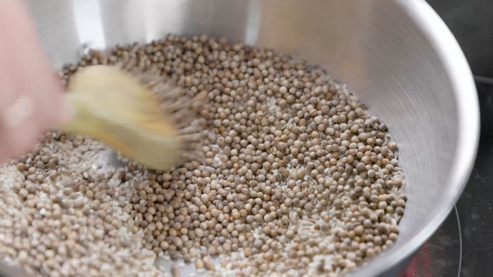 Qualitätsmerkmale: Ganze Samen sind rundlich, gelblich-braun und besitzen eine feine Riefung. Achte auf gleichmäßige Körner ohne Bruchstücke.