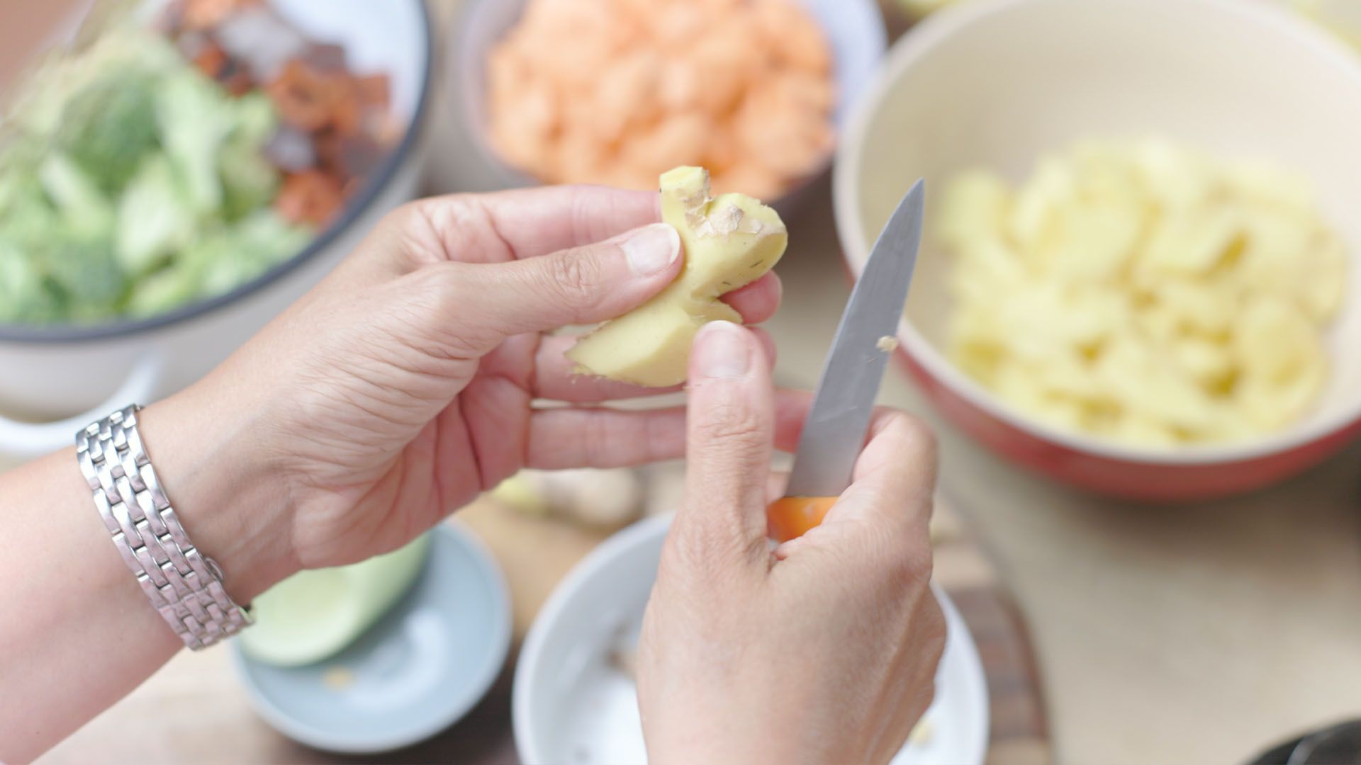 In der Ayurveda-Küche ist Ingwer ein absoluter Allrounder. Er wird: